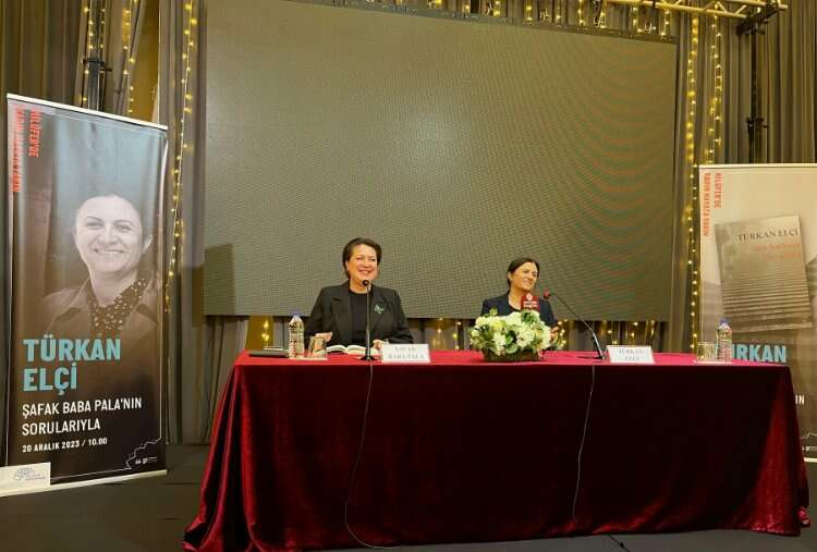 "3 ay seçim çalışması yaptım bu kadar kadını bir arada görmemiştim" diyerek teşekkür ile söyleşiye başlayan Türkan Elçi, çocukluğundan bahsederek konuşmasına devam etti. Diyarbakır'ın sur içinde doğup büyüyen Elçi, hayatından ve çalışmalarından bahsetti. Yıllarca edebiyat öğretmenliği yapıp devamında Hukuk Fakültesi'ni kazanarak avukatlıkla meslek hayatına devam eden Elçi, sonrasında da siyasete atılmak durumunda kaldığını belirtti. Elçi, "Bize yaşatılanlar, çektiğimiz acılar karşısında, kendimizi yenik düşmüş görüyoruz ama ben öyle görmüyorum. Öğretmenlikten istifa edip hukuk fakültesine geçmek benim için çok önemliydi. Yıllarca öğrencilerime, okumanın yaşı olmadığını anlattım. Edebiyat benim çocukluktan gelen ilgi alanlarımdan biriydi. Belli bir okuma kültürüyle oluşan bir şeydi. Ben kendi çocukluğumu anlatırken, Diyarbakır'dan bahsederken, ne kadar uzak diye tabir etsem de biz şu an bir araya gelebildiğimize göre birbirimize o kadar da uzak değiliz" diyerek konuşmasına devam etti.
