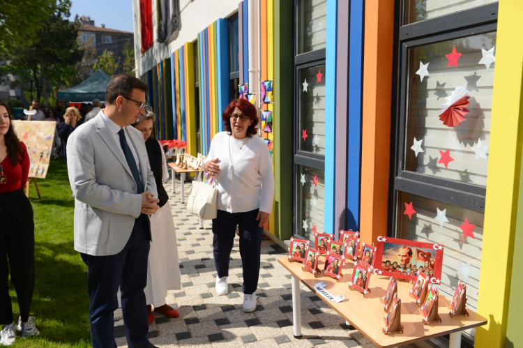Etkinliklerin ardından veliler, çocukların 23 Nisan için özel olarak hazırladıkları resim sergilerini de gezdi.