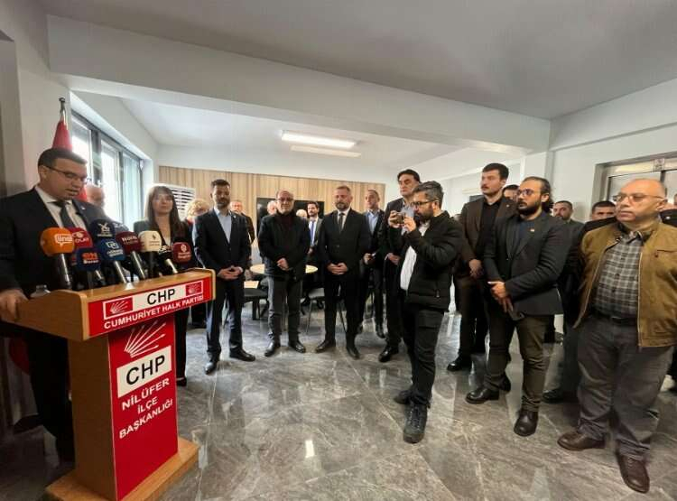 CHP Nilüfer İlçe Başkanlığı'nda, Bursa Eczacı Odası eski Başkanı Okan Şahin, Nilüfer Belediye Başkanlığı'na aday adaylığını açıklamak üzere basın açıklaması gerçekleştirildi.