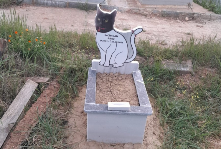 Bir vatandaşın çok sevdiği kedisi için yaptırdığı kedi mezarının üzerinde, ölen kedinin resmi, ismi ile doğum ve ölüm tarihinin yer aldığı görüldü.