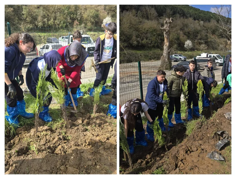Orman Haftası münasebetiyle gerçekleştirilen programda, heyecanları gözlerinden okunan öğrenciler ellerine aldıkları küreklerle fidanları toprakla buluşturdu. Protokol üyelerinin de eşlik ettiği dikim çalışmalarında, ilçeye yeni bir yeşil alan kazandırılırken, öğrencilere doğayı koruma bilinci uygulamalı olarak aşılandı.