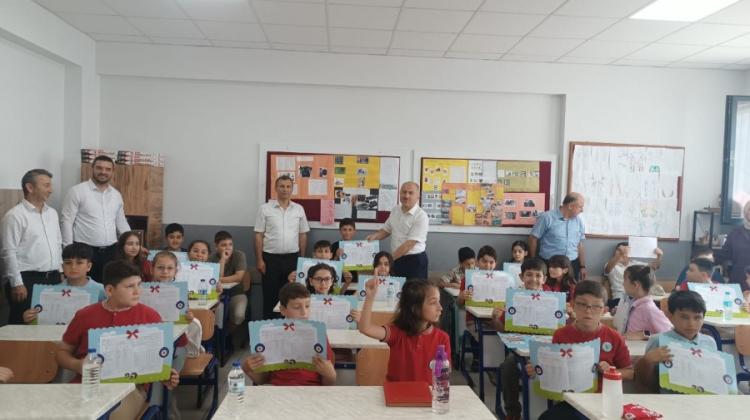 Kaymakam Karamehmetoğlu, öğrencilere tek tek karnelerini takdim ederken onlarla yakından ilgilendi ve Öğrencilere yaz tatili planlarını sorarak, tatillerini verimli geçirmeleri konusunda önemli tavsiyelerde bulundu.
