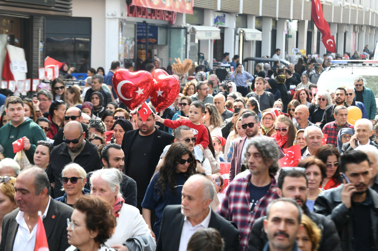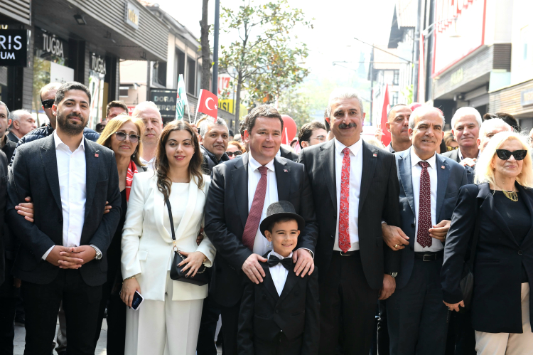 Büyük Önder Mustafa Kemal Atatürk’ün çocuklara armağan ettiği 23 Nisan Ulusal Egemenlik ve Çocuk Bayramı Osmangazi ilçesinde düzenlenen muhteşem bir kortej yürüyüşüyle kutlandı. Zafer Plaza Meydanı’nda vatandaşların yoğun katılımıyla tören düzenlendi. Burada düzenlenen törende Osmangazi Belediyesi Halk Dansları Ekibi bir gösteri yaptı. Törenin ardından Osmangazi Belediye Başkanı Erkan Aydın, CHP Bursa İl Başkanı Nihat Yeşiltaş, CHP Osmangazi İlçe Başkanı Raşit Gürbüz, CHP Parti Meclis Üyesi Canan Taşer, çocuklar ve vatandaşların yoğun katımıyla kortej yürüyüşü gerçekleşti. Renkli görüntülere sahne olan etkinlikte öğrenciler bayram sevincini hep birlikte yaşarken, vatandaşlar da korteje alkışlarla eşlik etti. Zafer Plaza Meydanı’nda başlayan yürüyüşe katılanlar ellerinde bulunan Türk bayrakları ve Atatürk posterini sallayıp marşlar söyleyerek büyük coşku yaşadı.