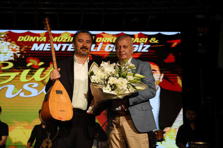 Konser sonunda Osmangazi Belediye Başkan Yardımcısı Mutlu Esendemir, usta sanatçı Menteşeli Cengiz’e çiçek takdim etti.