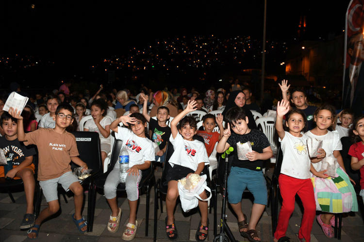 Minik izleyiciler, Osmangazi Belediyesi’nin mahallelerde düzenlediği açık hava sinema gösterimlerinde unutulmaz anlar yaşıyor.