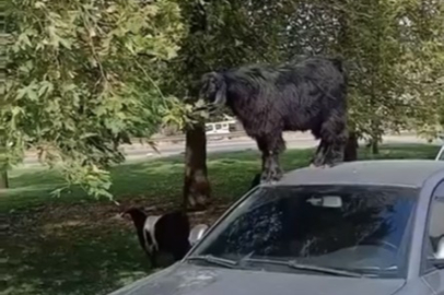 Keçiler, park halindeki otomobilin üzerine çıkarak yaprakları yemeye başladı.