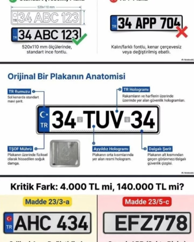 Ekipler tarafından yapılan uyarılarda, standart dışı olarak bilinen APP plakaların mevzuata aykırı olduğu hatırlatıldı. 1 Nisan itibarıyla yürürlüğe girecek düzenleme kapsamında bu plakaları kullanan sürücülere cezai işlem uygulanacağı belirtildi.