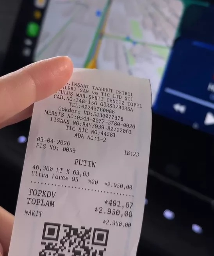 Ödeme yaptıktan sonra aldıkları fişi kontrol eden Rus aile, plaka hanesinde 'PUTIN' yazdığını görünce neye uğradığını şaşırdı. Önce şaşkınlık yaşayan, ardından durumu gülümseyerek karşılayan aile, bu ilginç anıyı sosyal medya hesaplarından paylaştı. Kullanıcılar "Bursalı pompacı zekası", "Putin'in bile haberi yoktur" şeklindeki esprili yorumlarında bulunurken, o anlar viral oldu.