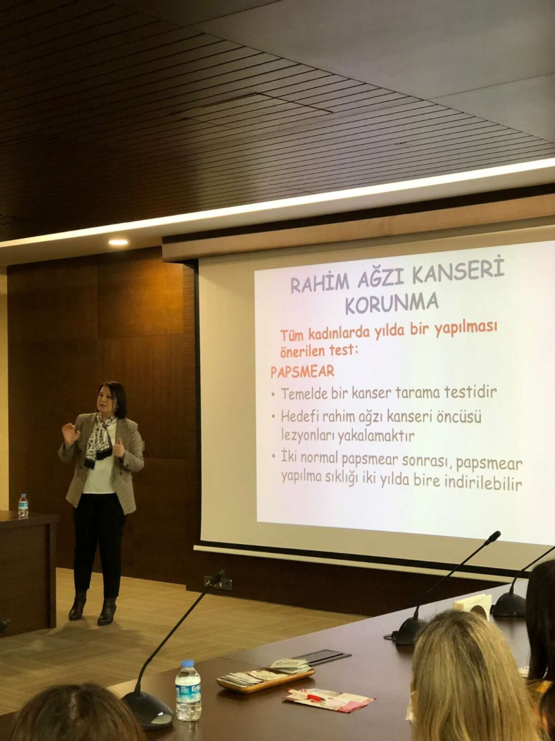 Özel Hayat Hastanesi Kadın Hastalıkları ve Doğum Uzmanı Op. Dr. Nazmiye Şentürk, dünyada her yıl 274 bin kadının hayatını kaybettiği rahim ağzı kanseri hakkında Otoyol Yatırım ve İşletme’nin kadın çalışanlarını bilgilendirdi.