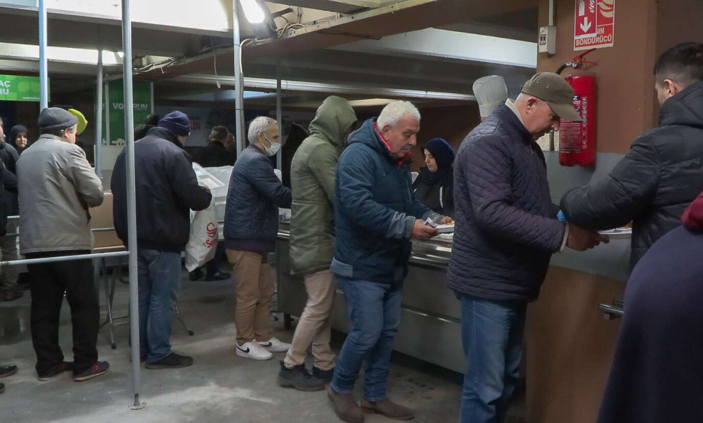 Asrın felaketinde büyük yıkıma uğrayan Hatay’da, yardımların dağıtımı, geçici yaşam alanları oluşturulması ve seyyar tuvaletlerin kurulumuyla görevlendirilen Bursa Büyükşehir Belediyesi, Ramazan bereketini Hatay’da da yaşatıyor. Türkiye genelinden gelen yardımları her gün düzenli olarak Hatay’da afetzedelere ulaştıran Bursa Büyükşehir Belediyesi, Ramazan’ın ilk gününde 3 ayrı noktada toplam 2 bin kişiye iftar ve sahur yemeği verdi. İftar ve sahur planlaması Ramazan boyunca devam edecek.