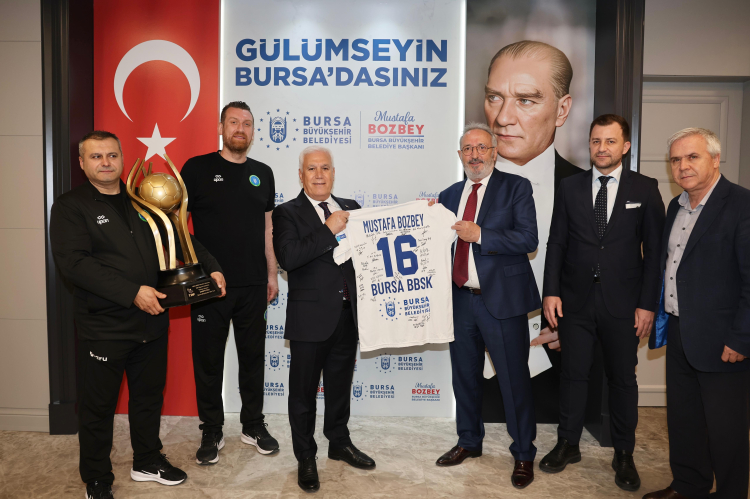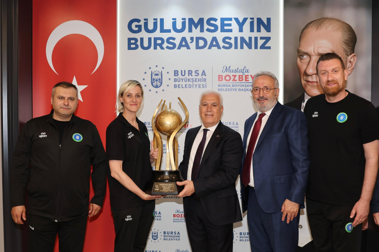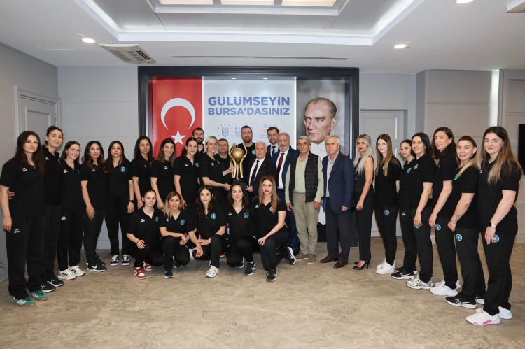 Tarihinde ilk kez Türkiye Kupası'nı müzesine götürme başarısı gösteren kadın hentbol takımı, Bursa Büyükşehir Belediye Başkanı Mustafa Bozbey’i makamında ziyaret etti.