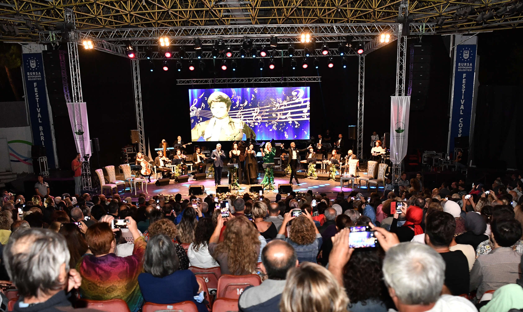 Sunuculuğunu Nalan Höke Turan, orkestra şefliğini ise Tanju Erol’un yaptığı gecede; TRT sanatçıları Melihat Gülses, Mehsem Özşimşir, Mine Geçili, Nusret Yılmaz ve Alp Arslan, sahneye birlikte çıkarak programa Zeki Müren’in ‘Hayat Bazen Tatlıdır’ şarkısıyla başladı. Tam bir müzik ziyafetinin sunulduğu programda Sanat Güneşi’nin yıllardır dillerden düşmeyen ‘Manolyam’, ‘Gitme Sana Muhtacım’, ‘Gözlerinin İçine Başka Hayal Girmesin’, ‘Ne Söylesen Sen Haklısın’ gibi eserlerini binlerce Bursalı, sanatçılar ile birlikte seslendirdi.
