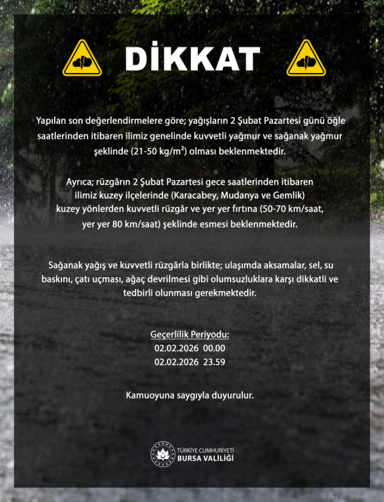 Son dakika! Bursa Valiliği'nden uyarı geldi!