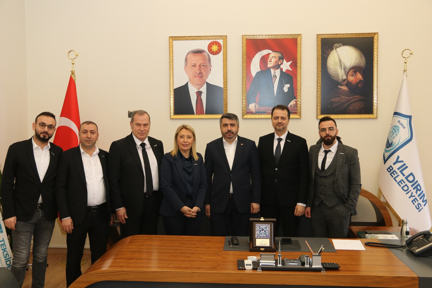 Tekstil ve Konfeksiyon Sanayi İş İnsanları Derneği (TEKSİDER) Yönetim Kurulu, Bursa Protokolü’ne ziyaretlerini sürdürüyor. TEKSİDER Yönetim Kurulu Başkanı Nermin Ceyhan, yönetim kurulu üyeleri ile birlikte Yıldırım Belediye Başkanı Oktay Yılmaz’ı makamında ziyaret etti.