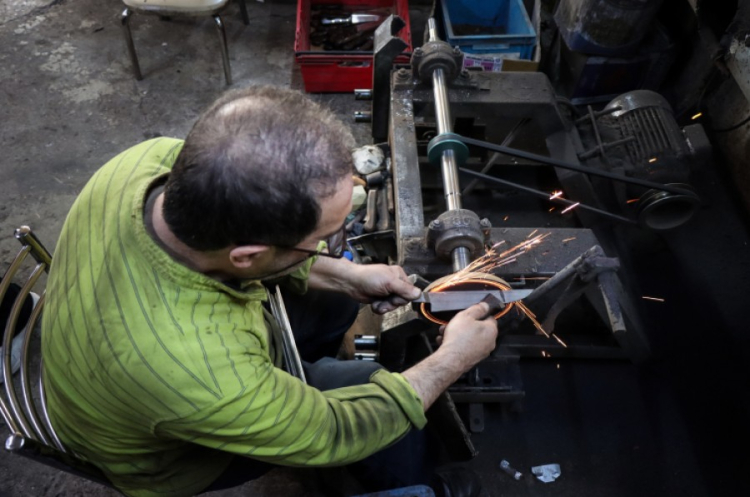 Ramazan Bayramı'ndan sonra başlayan hummalı çalışmada kurban bıçağı taleplerini karşılamak için çaba gösteren esnaf, önce makasla çelik ham maddeyi şekillendiriyor. Damgalama ve ısı işleminin ardından parlatma, sap takma ve bilemeyle bıçaklar kullanıma hazır hale getiriliyor.
