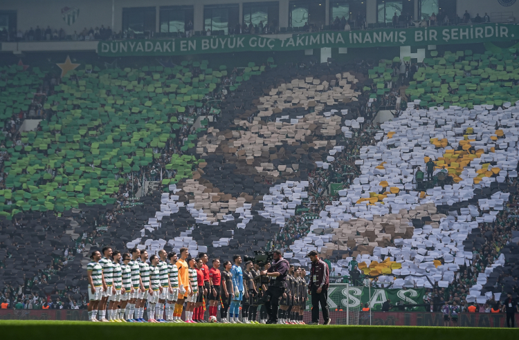 45 bin 450 taraftarın tribünleri doldurduğu mücadelede, 40 bin kartonla yapılan dev koreografi geceye damga vurdu. Taraftarın oluşturduğu atmosfer, şampiyonluğun en büyük mimarlarından biri oldu.