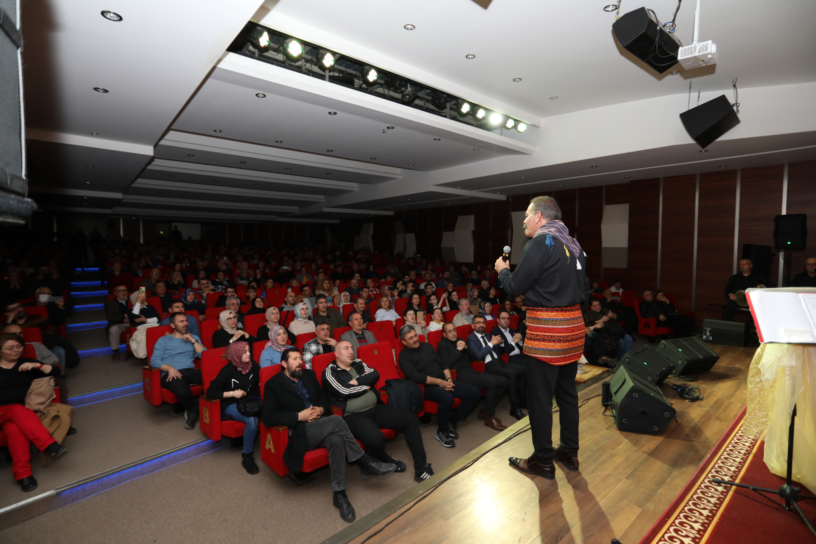 Başta şefimiz olmak üzere Türk Halk Müziği Koromuza da teşekkür ediyorum. Bizleri burada yalnız bırakmayıp salonu doldurduğunuz için siz kıymetli vatandaşlarımıza da teşekkür ediyorum” ifadelerinde bulundu. Konuşma sonrası Emin Dündar, konuk sanatçıya gecenin anısına hediye takdimi gerçekleştirdi.