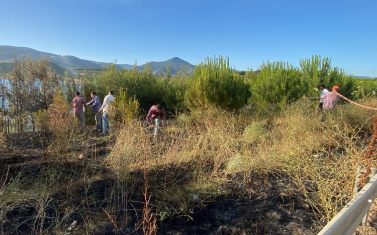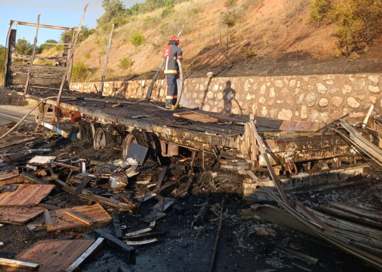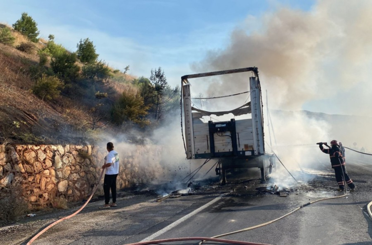 Kısa sürede tırın dorsesini saran alevler bir anda büyürken, yol kenarında otluk alanda tutuştu. Kısa sürede olay yerine gelen ekipler, alevlere teslim olan dorseyi söndürürken, otluk alana sıçrayan yangın yolun yanında bulunan ormana sıçramadan kontrol altına alındı.