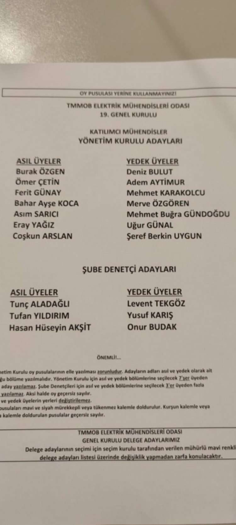 Bugün sabah 09.00'da başlayan oy verme işlemi saat 17.00 itibariyle sona erdi. Yapılan oy sayımının ardından mevcut Başkan Burak Özgen, yeniden TMMOB Elektrik Mühendisleri Odası Bursa Şube Başkanı seçildi ve güven tazeledi.