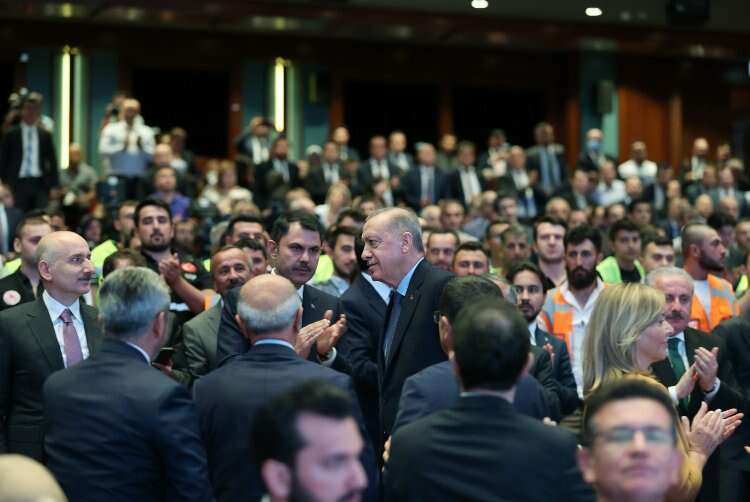 Bugün açıkladığımız projenin tamamı, 500 bin konut, 250 bin konut amaçlı arsa ve 50 bin iş yeri bittiğinde 3 milyon 750 bin insanımızı daha güvenli yaşam alanlarına kavuşturmuş olacağız. Ülkenin her kazancına itiraz edenler de unutmayın, onlar boş durmuyoruz. Her projemiz gibi bunun da yapılamayacağını söylemeleri ben kale bile almıyorum. Çünkü biz yaptık, yapıyoruz ve yapmaya da devam edeceğiz. Bizi asıl şaşırtan muhalefet cenahının gençlerimize karşı olmasıdır. Ey muhalefet, biz göreve geldiğimizde sizin gençlere verdiğiniz burs neydi ya? Biz gençlerimizi hamd olsun sokaklarda bırakmadık, 850 bin gencimizi iskan edecek yurtlarımız var. Yurtlarımız henüz dolmuş değil, müracat henüz yok biz ona rağmen yeni ilavelerde bu rakamı 1 milyona çıkaracağız.