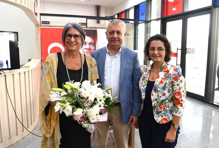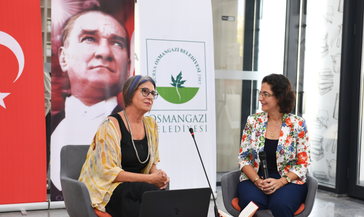 Söyleşinin ardından Osmangazi Belediye Başkan Yardımcısı Mutlu Esendemir, Hasan Âli Yücel’in Torunu Prof. Dr. Güzel Yücel Gier’e çiçek takdim etti.