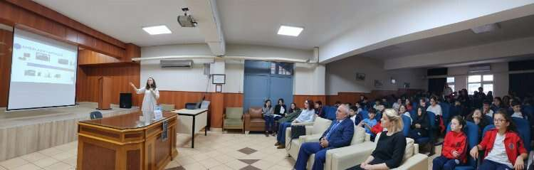 Çalışmalarını polimer malzemeler üzerine sürdüren akademisyen Terzioğlu, ortaokul öğrencileri ile interaktif bir söyleşi gerçekleştirdi. Öğrenciler, ana teması ambalajlarda sürdürülebilirlik ve küresel ambalaj trendleri olan söyleşiyi ilgi ile takip ettiler. Öğrencilere tek kullanımlık plastik ambalaj ve ürünlerin kullanımının azaltılması ve atıklarının uygun şekilde depolanarak geri dönüştürülmesi gerekliliği hakkında farkındalık kazandırıldı.