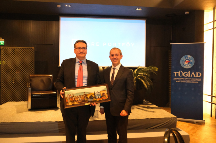 Türkiye Genç İş İnsanları Derneği (TÜGİAD) Bursa Şubesi’nin düzenlediği “TÜGİAD Bursa Buluşmaları” kapsamında, Kare Portföy Yönetimi Genel Müdürü Ümit Kumcuoğlu, Almira Otel’de dernek üyeleriyle bir araya geldi. Yoğun katılımla gerçekleşen etkinlikte Kumcuoğlu, "Yeni Dönemde Ekonomi: Riskler, Fırsatlar ve Stratejiler" başlıklı bir konuşma gerçekleştirdi.