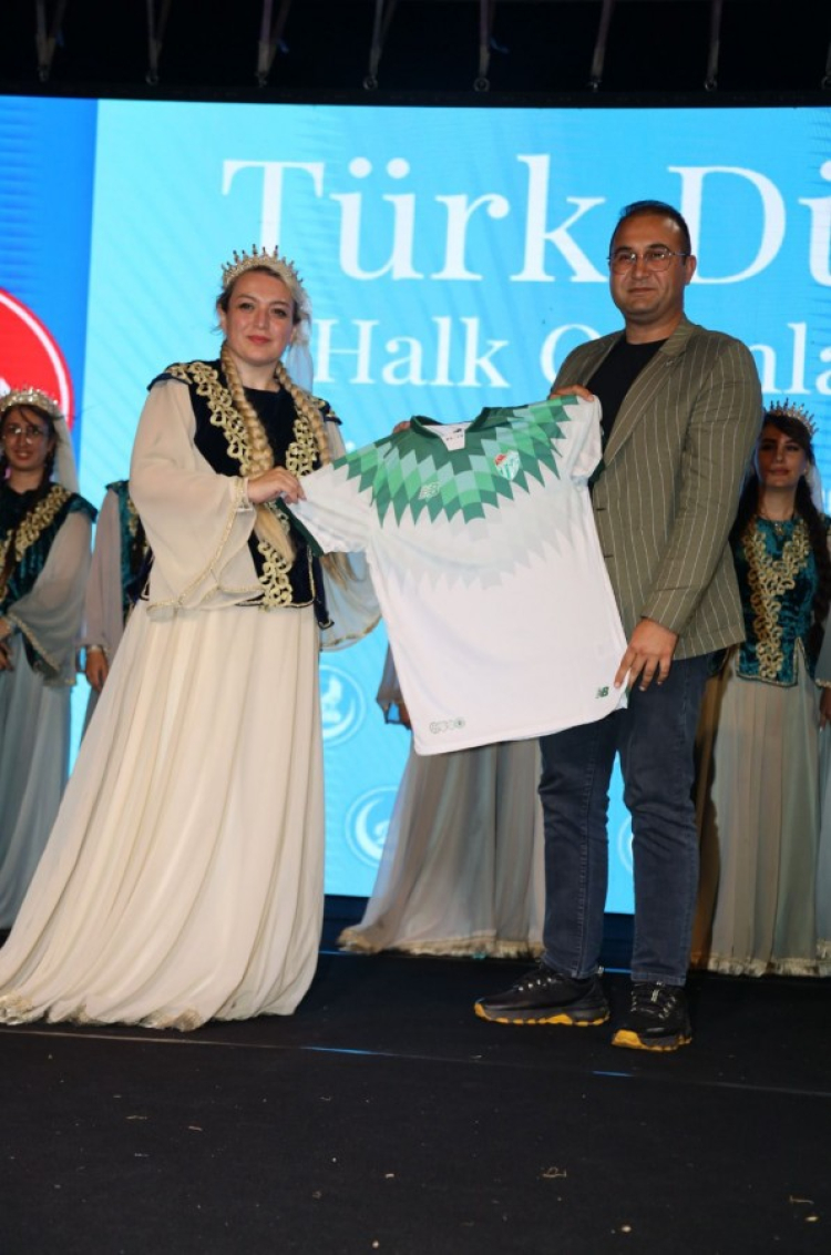 Ülkü Ocakları Bursa İl Başkanlığı tarafından düzenlenen Türk Dünyası Halk Oyunları Şöleni'nde, ekipler birbirlerine forma hediye etti.