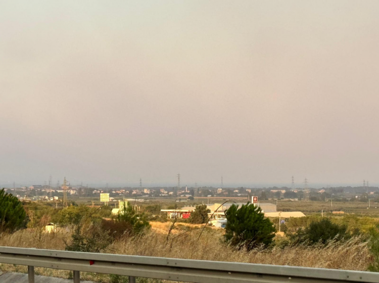 Bursa-Orhangazi otoyulunda elde edilen bir görselde yangın bulutlarının Bursa'da dahi havanın rengini değiştirdiği görüldü.