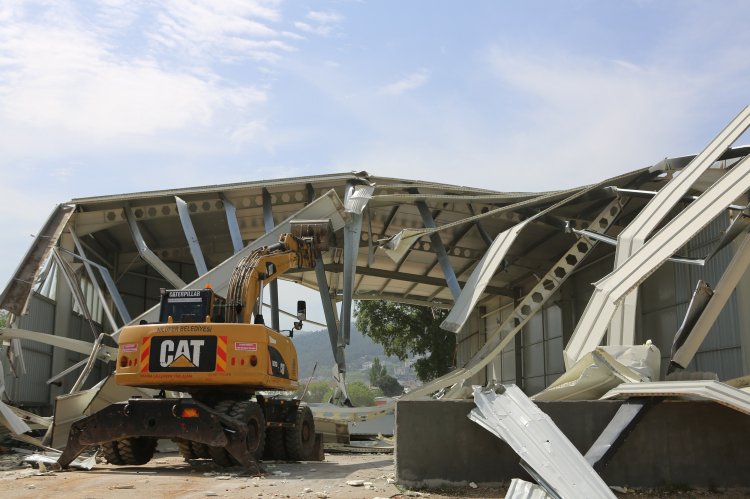 Zabıta ekiplerinin güvenlik önlemleri eşliğinde yürütülen yıkım çalışmaları kapsamında, Yaylacık Mahallesi’nde aynı parsel üzerine inşa edilen 500’er metrekarelik iki kaçak fabrika yerle bir edildi.