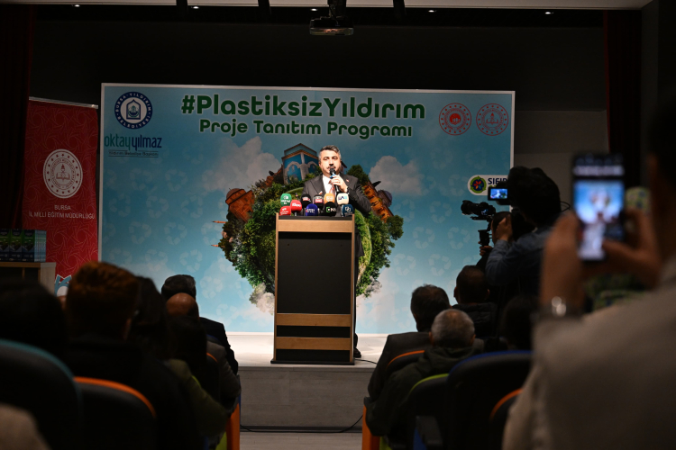 Projenin startının verildiği Nuri Erbak Ortaokulu’nda düzenlenen tanıtım toplantısına Yıldırım Belediye Başkanı Oktay Yılmaz’ın yanı sıra Milli Eğitim İl Müdür Yardımcısı Yunus Bulut Yıldırım İlçe Milli Eğitim Müdürü Mustafa Sevinç, Nuri Erbak Ortaokulu Müdürü Taha Karagöz, öğretmen ve öğrenciler katıldı. Yıldırım’ın gerçek sahiplerinin çocuklar ve gençler olduğunu vurgulayan Belediye Başkanı Oktay Yılmaz, “Bugün Yıldırım Belediyesi olarak, çevre bilinciyle attığımız adımlara bir yenisini daha ekliyoruz. Plastik kullanımını azaltmak bir tercihten öte, bir sorumluluktur. Bu bizim gençlerimize, yarınlara karşı olan sorumluğumuz. Çevreye duyarlı bir yaşam biçimini küçük yaşta öğrenen ve hayatına geçiren bir nesil yetiştiriyoruz. Sizlere çelik termoslar dağıtıyoruz, okullarımıza su arıtma cihazları kuruyoruz. Böylece hem sağlıklı suya ulaşıyor hem de plastik atıkları azaltıyoruz” dedi.