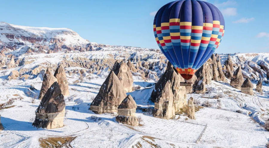 Eğer hava uygunsa sabahın erken saatlerinde balon turuyla gökyüzüne yükselip peri bacalarının üzerine kar yağarken uyanmak mümkün. Bu, yılbaşı tatilini eşsiz kılacak bir deneyim.