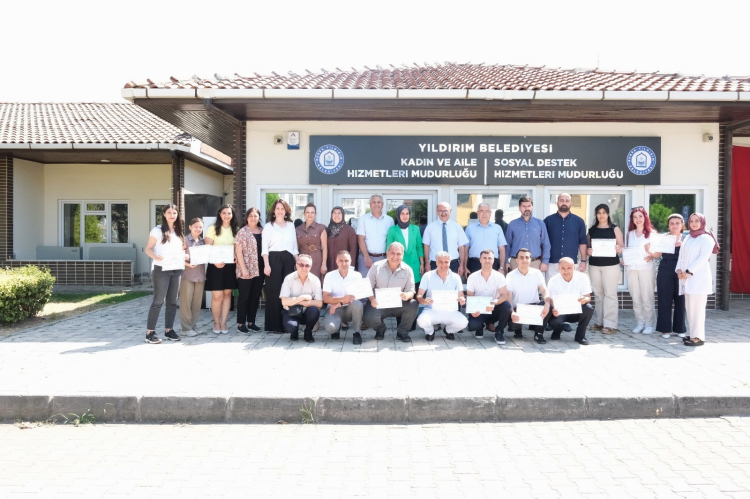 Yıldırım Belediyesi özel bireylerin yaşamını kolaylaştıran ve toplumsal hayata katılımını destekleyen projelerine bir yenisini ekledi. Yıldırım Belediyesi, Aile ve Sosyal Hizmetler İl Müdürlüğü ve Yıldırım Halk Eğitim Merkezi iş birliğiyle, düzenlen proje kapsamında kamu kurumlarında görev yapan 12 personele Türk İşaret Dili temel eğitimi verildi. Eğitim, kamu hizmetlerinin erişilebilirliğini artırmayı ve işaret diliyle iletişim kuran vatandaşların kamu hizmetlerinden daha kolay, hızlı ve kaliteli bir şekilde yararlanmasını sağlamayı amaçlıyor. Yıldırım Belediyesi Kadın ve Aile Hizmetleri Müdürlüğü’nde gerçekleştirilen 120 saatlik eğitimi başarıyla tamamlayan katılımcılar sertifikalarını, Vali Yardımcısı Mustafa Güney’in de katıldığı törenle aldı.