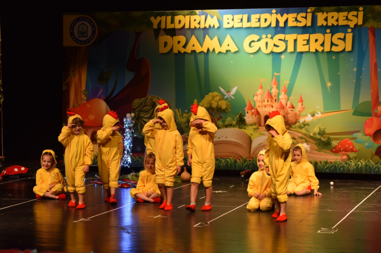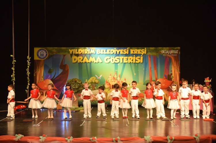 Yıldırım Belediyesi Kreşi öğrencilerinin yıl sonu gösterisi, ayakta alkışlanırken, ailelere duygusal anlar yaşattı.