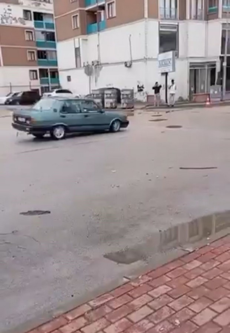 Bursa'nın Osmangazi ilçesinde otomobiliyle yol ortasında dakikalarca drift atan bir sürücü, o anları arkadaşına kaydettirdi. Çevredekileri ve trafiği tehlikeye düşüren sürücü, can güvenliğini de hiçe sayarken o anları kayda aldırdı. Sosyal medyadaki görüntüler üzerine ekipler soruşturma başlattı.