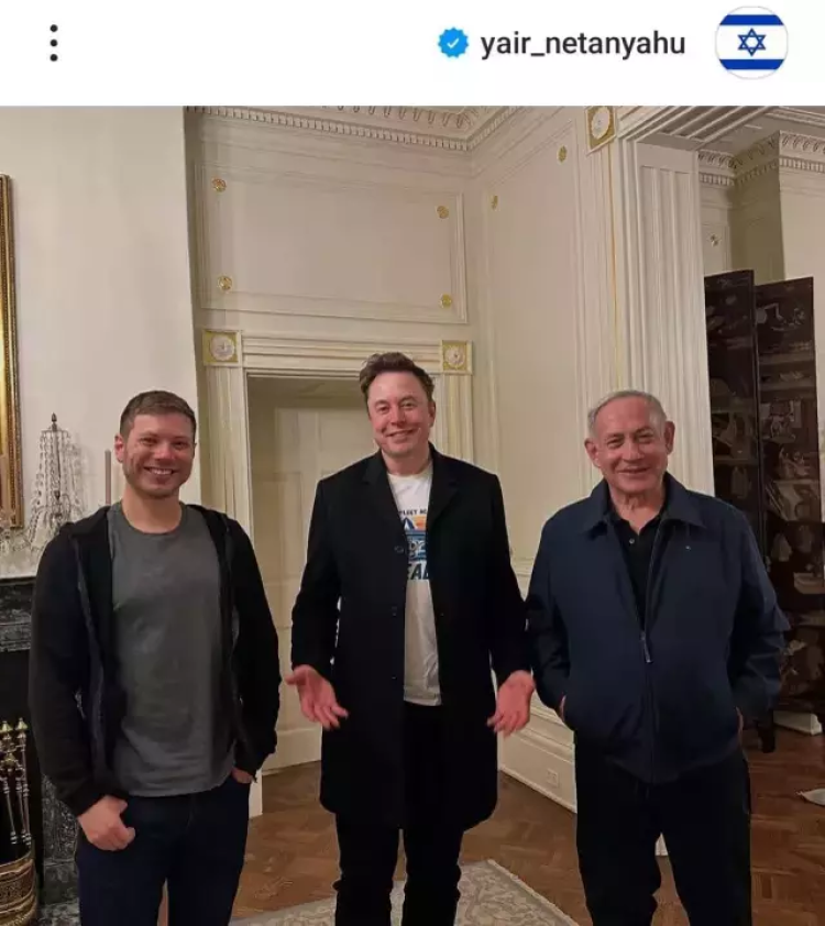 Netanyahu oğlu Yair Netanyahu ile birlikte iş insanı milyarder Elon Musk ile bir araya geldi. O anlara ilişkin fotoğrafı ise Yair Netanyahu sosyal medya hesabından paylaştı.