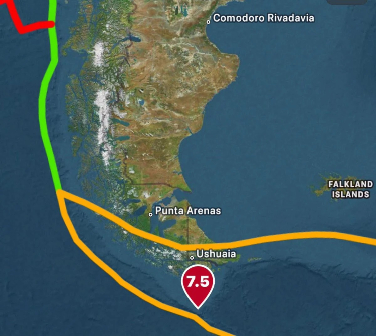 Depremlerin ardından, Pasifik Tsunami Uyarı Merkezi tarafından Arjantin’in güney kıyıları için tsunami alarmı verildi.