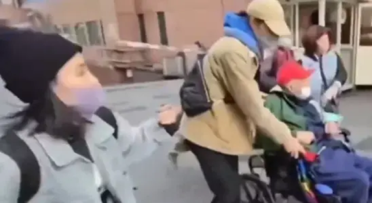 Bu görüntüler, 102 yaşındaki bir milyonerin, kendisinden çok daha genç bakıcısıyla gizlice evlenmesinin ardından hastaneden çocukları tarafından zorla çıkarıldığı anları gösteriyor.