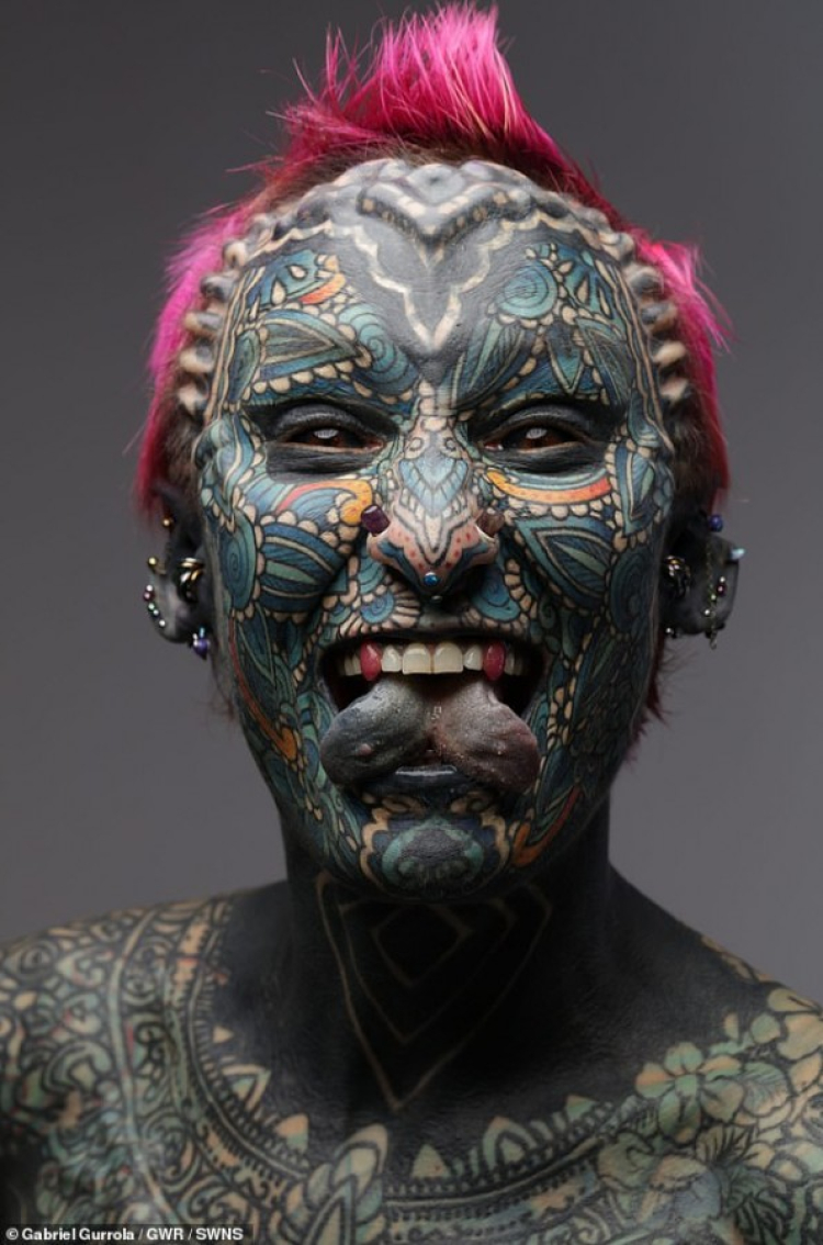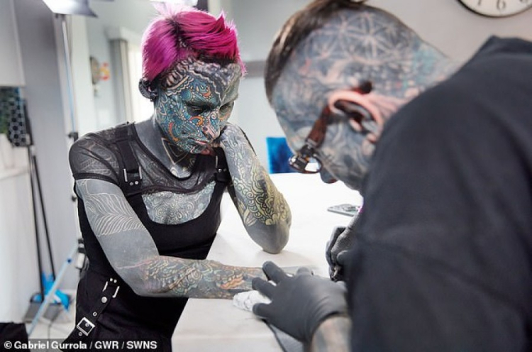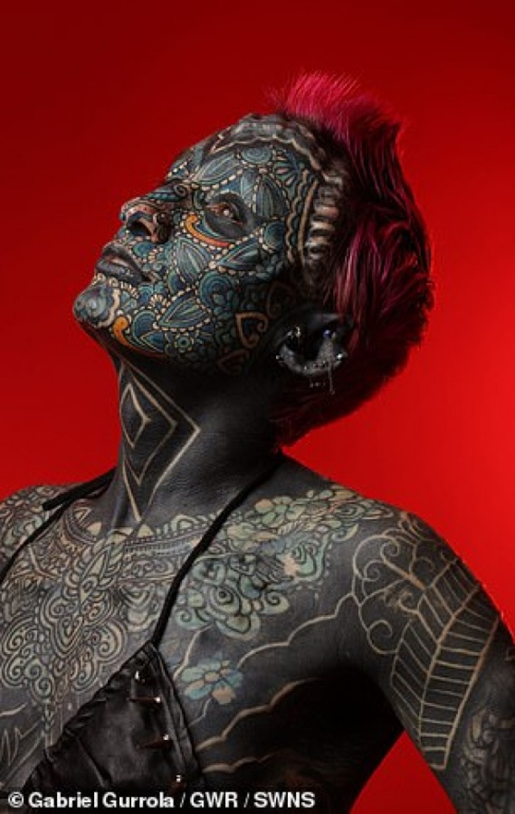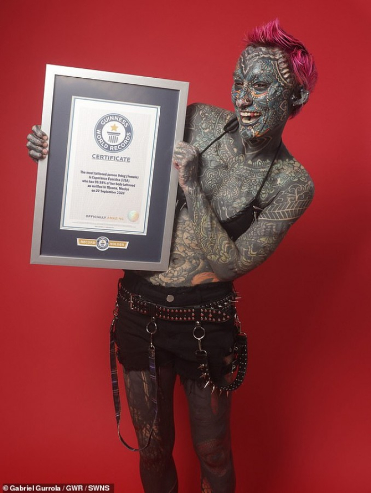 36 yaşındaki Esperance Lumineska Fuerzina 10 yılda vücudunun %99,98'ini dövmeyle doldurduktan sonra dünyanın en çok dövmesine sahip kadını oldu.