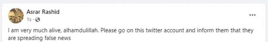 Resmi sosyal hesaplarından yaptığı açıklamayla hayatta olduğunu duyurdu.