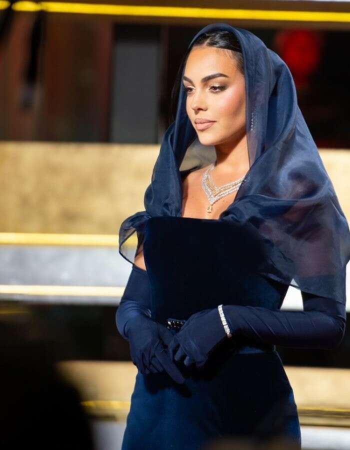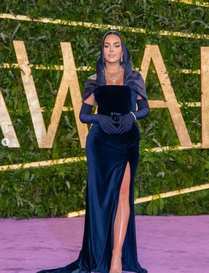 Dünyaca ünlü futbolcu Cristiano Ronaldo'nun sevgilisi Georgina Rodriguez, Suudi Arabistan'da katıldığı bir ödül töreninde tüm dikkatleri üzerine çekti.