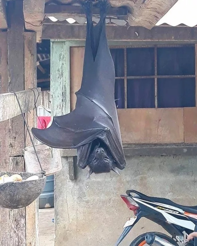Paylaşılan fotoğraflarda yarasanın bir evin çatısına ters şekilde asılı olduğu görülüyor. Ancak uzmanlara göre bu tür karelerde perspektif etkisi, hayvanın olduğundan çok daha büyük görünmesine neden oluyor. Yarasaların doğası gereği baş aşağı uyuduğu ve geniş kanat yapılarının açıldığında insan boyutuna yakın bir siluet oluşturduğu belirtiliyor.