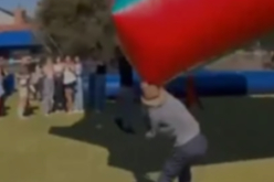 Krugersdorp kentinde bir okulda düzenlenen yardım etkinliği sırasında çocukların bulunduğu şişme oyun alanı ani bir rüzgarla havaya savrulurken, 2 çocuk düşerek yaralandı..