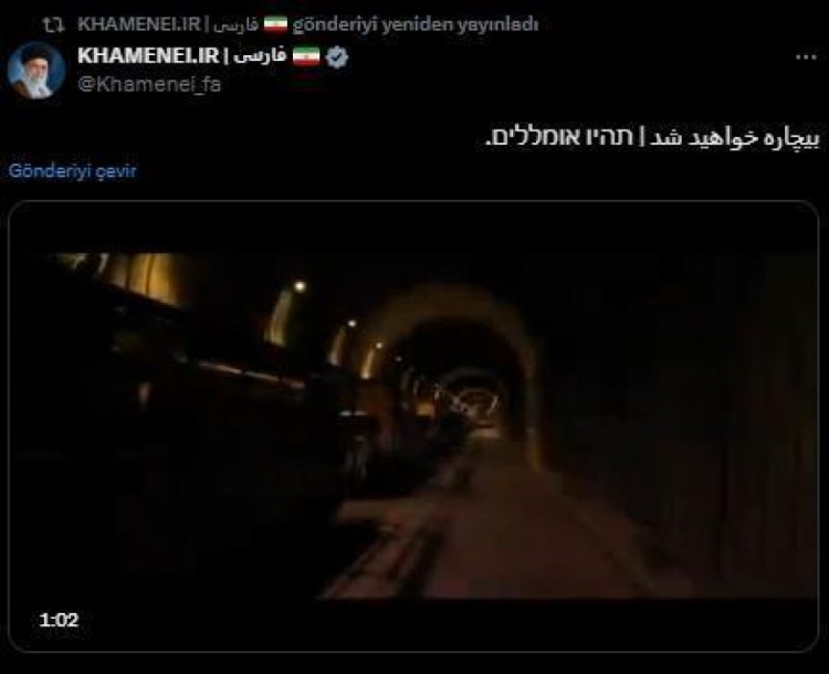 İran tarafından İsrail'e balistik füze saldırılarının yeniden başlatıldığı sırada İran dini lideri Ayetullah Ali Hamaney'in sosyal medya hesabından İbranice, "çaresiz kalacaksınız" mesajı paylaşıldı.