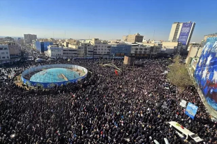 Tahran'ın sembol noktalarından İnkılap Meydanı kısa sürede doldu. Havadan kaydedilen görüntülerde meydanı ve çevre caddeleri dolduran yüz binlerce kişilik kalabalık dikkat çekti.
