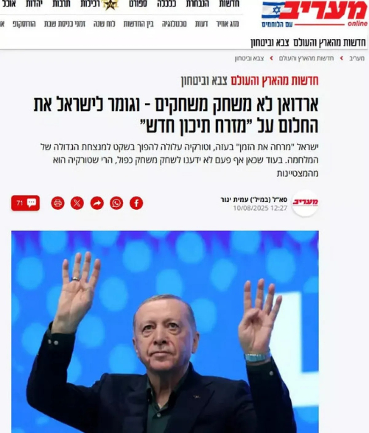 İsrail Savunma Kuvvetleri Planlama Dairesi Stratejik Bölümü ve Deniz İstihbaratı’nın eski kıdemli yetkilisi Yagur, “Erdoğan oyun oynamıyor ve İsrail’in yeni Orta Doğu hayalini bitiriyor” başlıklı dikkat çeken bir analiz yayımladı.