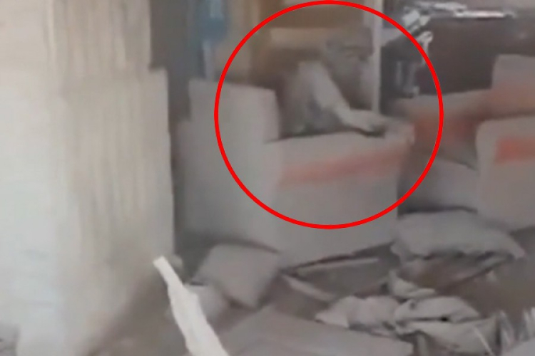 İsrail tarafından paylaşılan diğer görüntülere göre ise kapalı bir alan olduğu anlaşılan mekânda bir koltukta oturan cansız beden dikkat çekiyor.