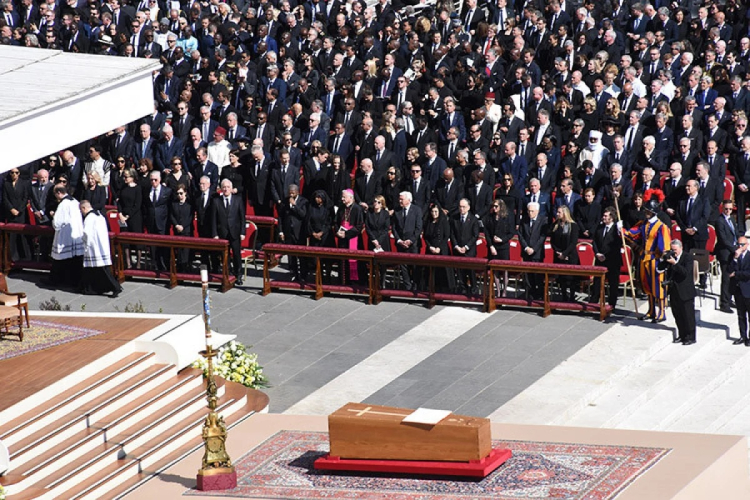 Törende ABD Başkanı Donald Trump, Fransa Cumhurbaşkanı Emmanuel Macron, İtalya Cumhurbaşkanı Sergio Mattarella, Almanya Cumhurbaşkanı Frank Walter Steinmeier, Arjantin Devlet Başkanı Javier Milei, Brezilya Devlet Başkanı Luiz Inacio Lula da Silva, Ukrayna Devlet Başkanı Volodimir Zelenskiy, İspanya Kralı 6. Felipe, İngiliz Kraliyet ailesinden Galler Prensi William ve İngiltere Başbakanı Keir Starmer, İtalya Başbakanı Giorgia Meloni, Filistin Başbakanı Mustafa Muhammed, Avrupa Birliği (AB) Konseyi Başkanı Antonio Costa, AB Komisyonu Başkanı Ursula von der Leyen, Avrupa Parlamentosu Başkanı Roberta Metsola ve Birleşmiş Milletler (BM) Genel Sekreteri Antonio Guterres gibi çok sayıda lider de yer aldı.
