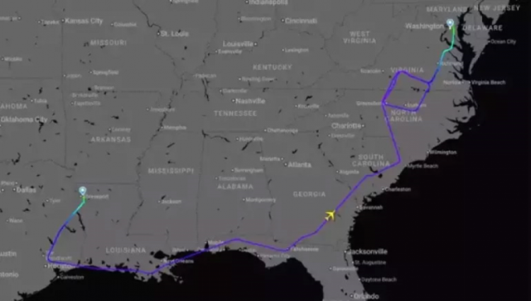 E-4B nightwatch, Washington DC'deki Joint Base Andrews üssüne uçuşu sırasında uzun ve dolambaçlı bir rota izledi. Louisiana eyaletinden kalkan uçak, bir kaç eyaletin etrafında tur attıktan sonra başkente inişini gerçekleştirdi.