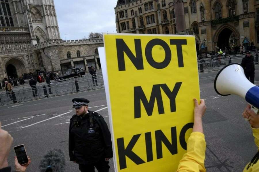 Kraliyet ailesi, İngiliz Milletler Topluluğu Günü'nü (Commonwealth Day) kutlarken, monarşi karşıtları "Benim kralım değilsin, "ırkçı kraliyet ailesi" yazan pankartlarla kraliyeti proptesto etti.